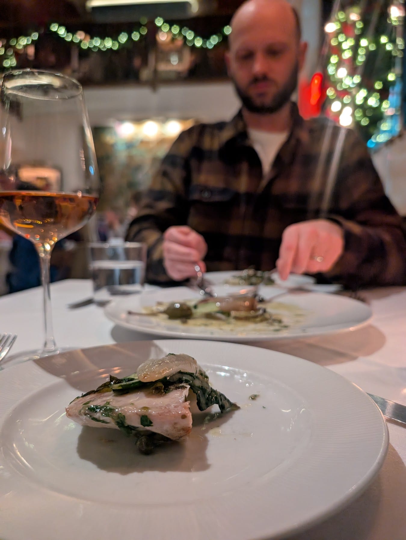 But then, spit back out in midtown, the day had been moving along all the while and the sun had set. But New York was not asleep. Of course it never sleeps for all of its lights which stand in for the sun and illuminate your way to what's next. And for us, it was our New Year's Day dinner at a place that's been around forever, an admittedly tame choice. Rich had never been, and I booked it a month beforehand out of sentimentality. Union Square Cafe was one of the first restaurants I got excited by when I leaned into my passion for cooking. The menu is designed around seasonal ingredients from local markets and wines from producers in the Northeast. Not to mention USC has a reputation for exceptional hospitality, where, counter to the culture of the industry, the staff is cared for as well as the diners, making for good vibrations.