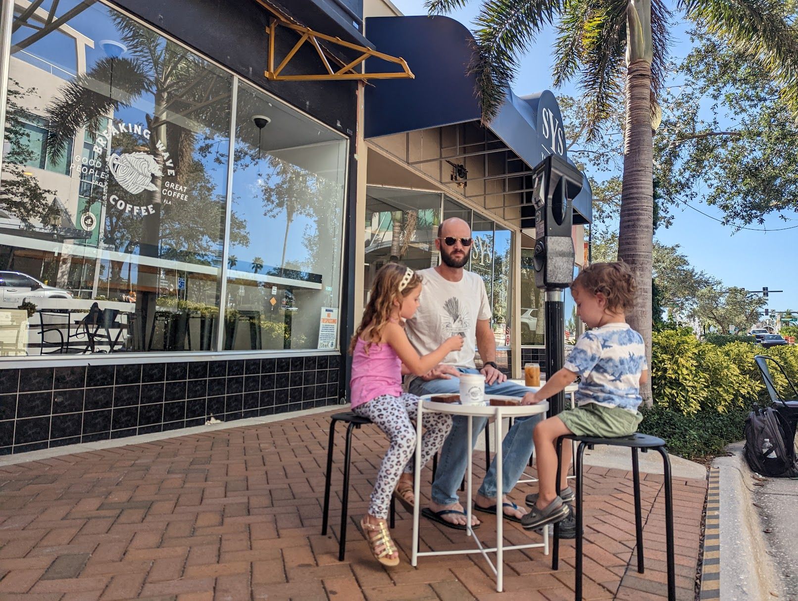 Onto caffeination station. A few new books under our arms, we found our way to a coffee shop two blocks down and got the kids settled out front at a kid-sized table for two with banana bread and freshly steamed cocoa. Rich and I seem to get the most private one-on-one time when May and Jack have just been served a treat. And so we stood aside, sipping our coffees and looking each other deeply in the eyes for our precious five minutes ;). A woman settling in a few tables down behind her lap top and with a tangible conviction to get a job done, complimented us on the kids. Figuring it was just a fleeting moment, I appreciated her kindness and assumed her momentum would see her back to her chair and to work.