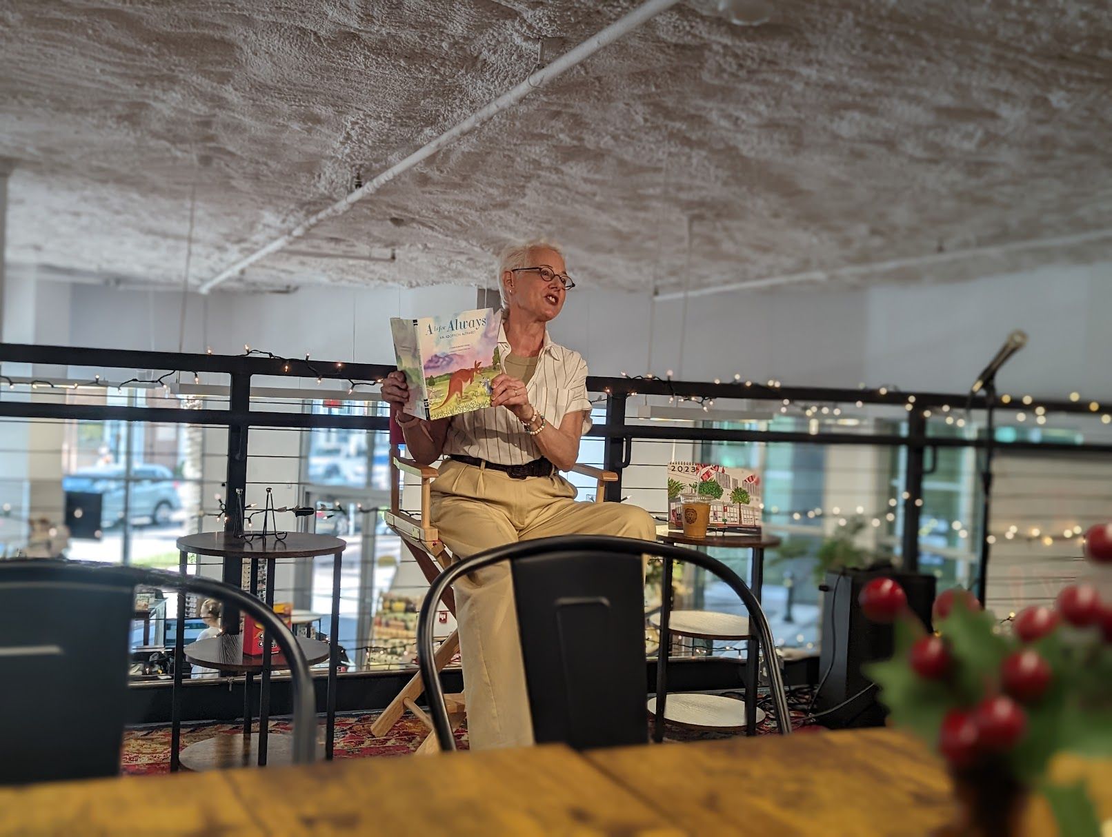 Instead the three of us slipped into easy conversation, indicative of kindred spirits. We talked about kids...hers young adults and fledging, and ours comically looking like adults having a coffee out in the city together...until they betrayed themselves and sipped cocoa from their paper cups with two hands. In the thick of our chat, we came to find out that this woman was in town to wrap up her book tour. She was scheduled to read her children's book (which happens to have a kangaroo and a koala claw-in-claw on the cover) at the independent bookstore two blocks down. I may or not have tucked Santa Jaws and The 12 Cats of Christmas further under my arm when we became aware of who we were talking to.